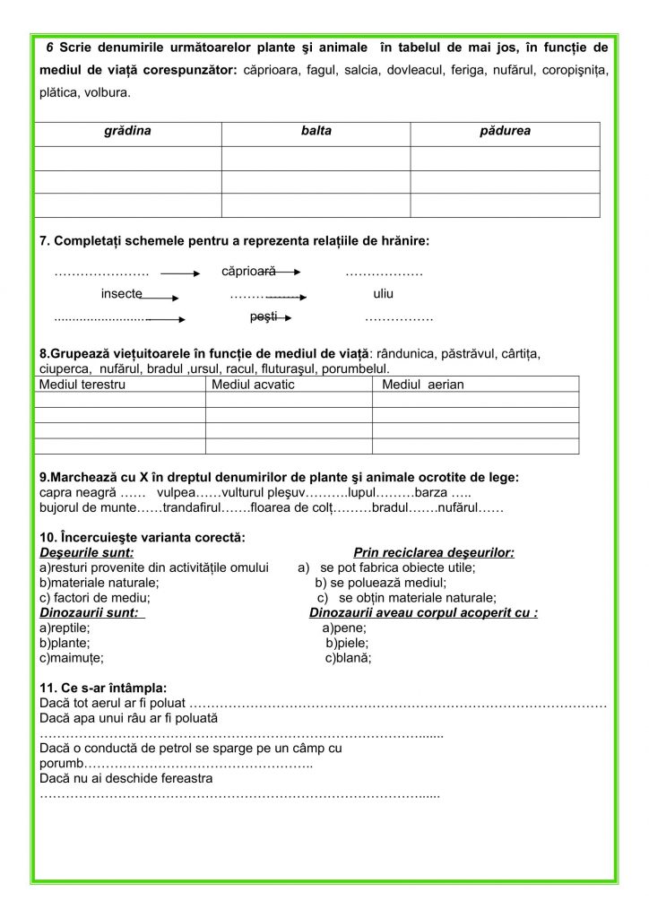 -formularea unor răspunsuri la întrebări despre natură, protejarea mediului, reciclare;