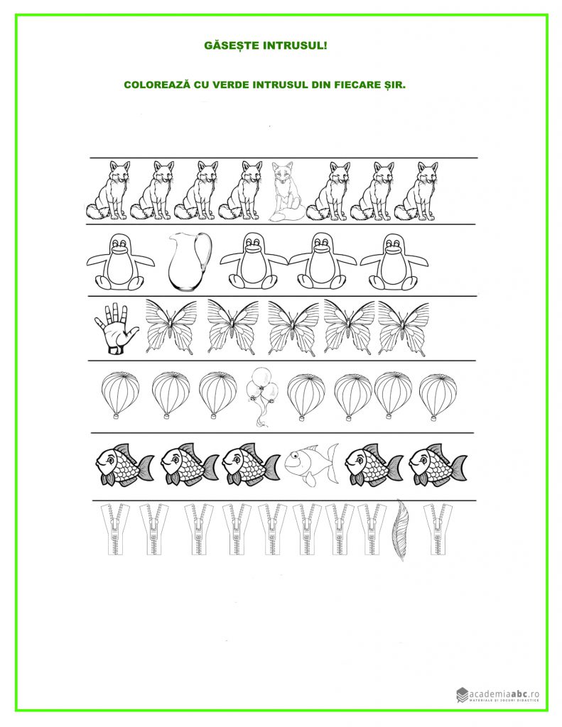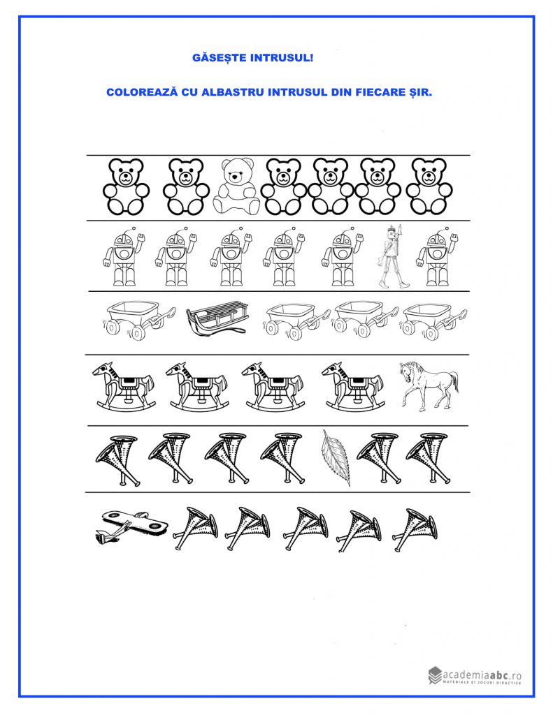 - să identifice intrusul din fiecare șir în parte;