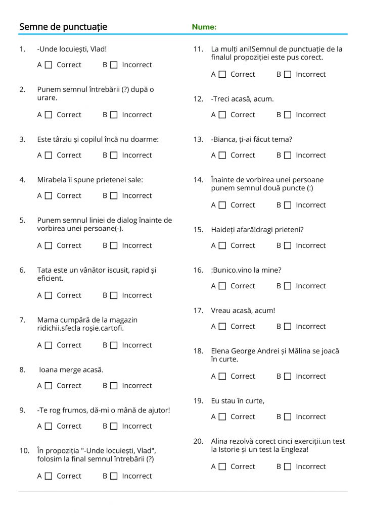 - stabilirea valorii de adevăr a propozițiilor date(corect/incorect);