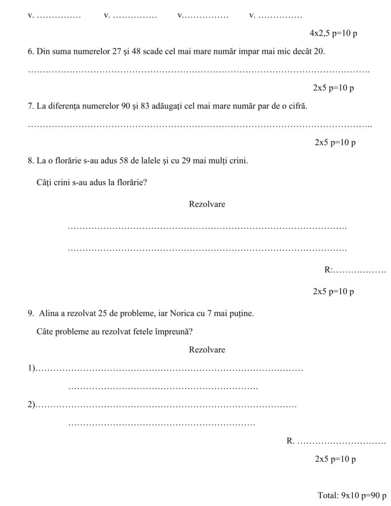 Evaluare-Adunarea și scăderea numerelor în concentrul 0-100 cu trecere peste ordinClasa a II-a, Clasa I, Clasele primare, Matematică / Autor AcademiaABC evaluare-clasa-I-matematica.doc (1 Descărcări ) Daniela CostandachiProfesor învățământ primar la Școala Gimnazială ,,Anastasie Panu”, Huși Distribuie pe: 0 Distribuiri Facebook 0 Email Imprimă Copiază legătura