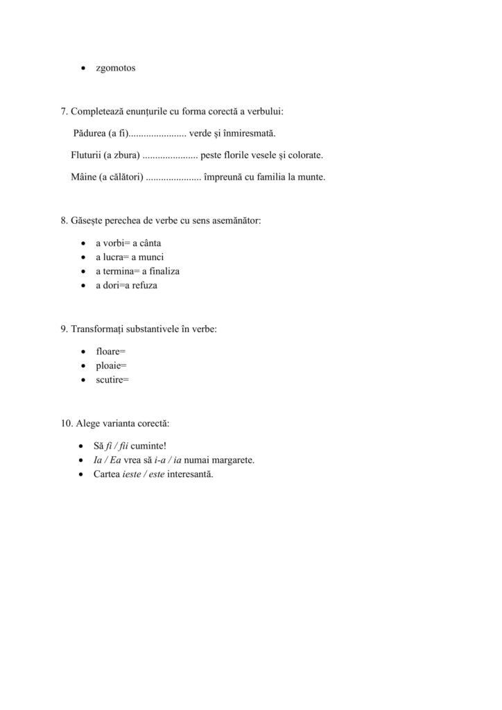 Verbul. Test de evaluareClasa a IV-a, Limba și literatura română / Autor AcademiaABC TEST-DE-VERIFICARE-VERBUL-1.docx (712 Descărcări ) Sîrbu Bianca-LăcrămioaraProfesor învățământ primar, 24 ani vechime în învățământ Distribuie pe: 0 Distribuiri Facebook 0 Email Imprimă Copiază legătura