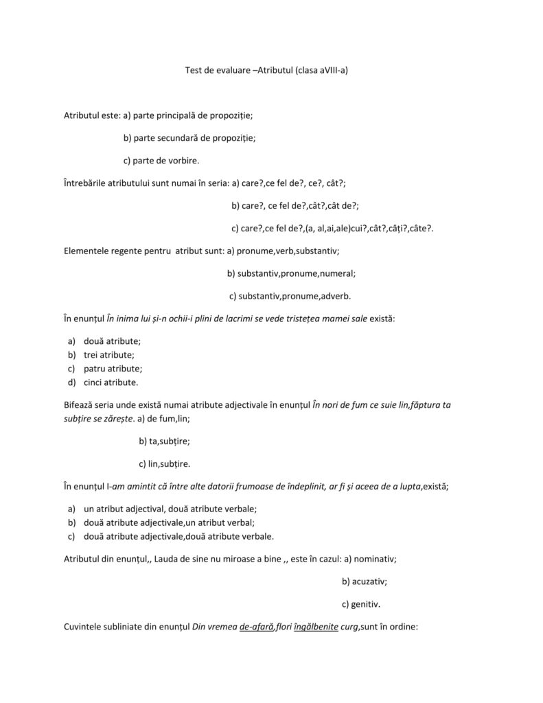 Test evaluare–Atributul (clasa a VIII-a)Clasa a VIII-a, Clasele gimnaziale, Limba şi literatura română / Autor AcademiaABC Test-de-evaluare-–Atributul-clasa-a-VIII-a.pdf (1 Descărcări ) Vieru MirelaProfesor de Limba și literatura română Distribuie pe: 0 Distribuiri Facebook 0 Email Imprimă Copiază legătura