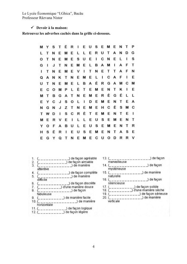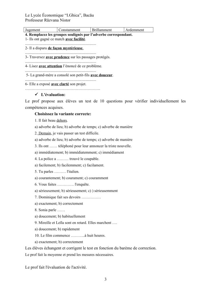 Projet didactique-Les adverbes de manièreModele Proiecte didactice, Portofoliul profesorului / Autor AcademiaABC PROJET-DIDACTIQUE-2.docx (901 Descărcări ) Nistor RăzvanaProfesor Limba franceza, grad I, 15 ani vechime Distribuie pe: 0 Distribuiri Facebook 0 Email Imprimă Copiază legătura