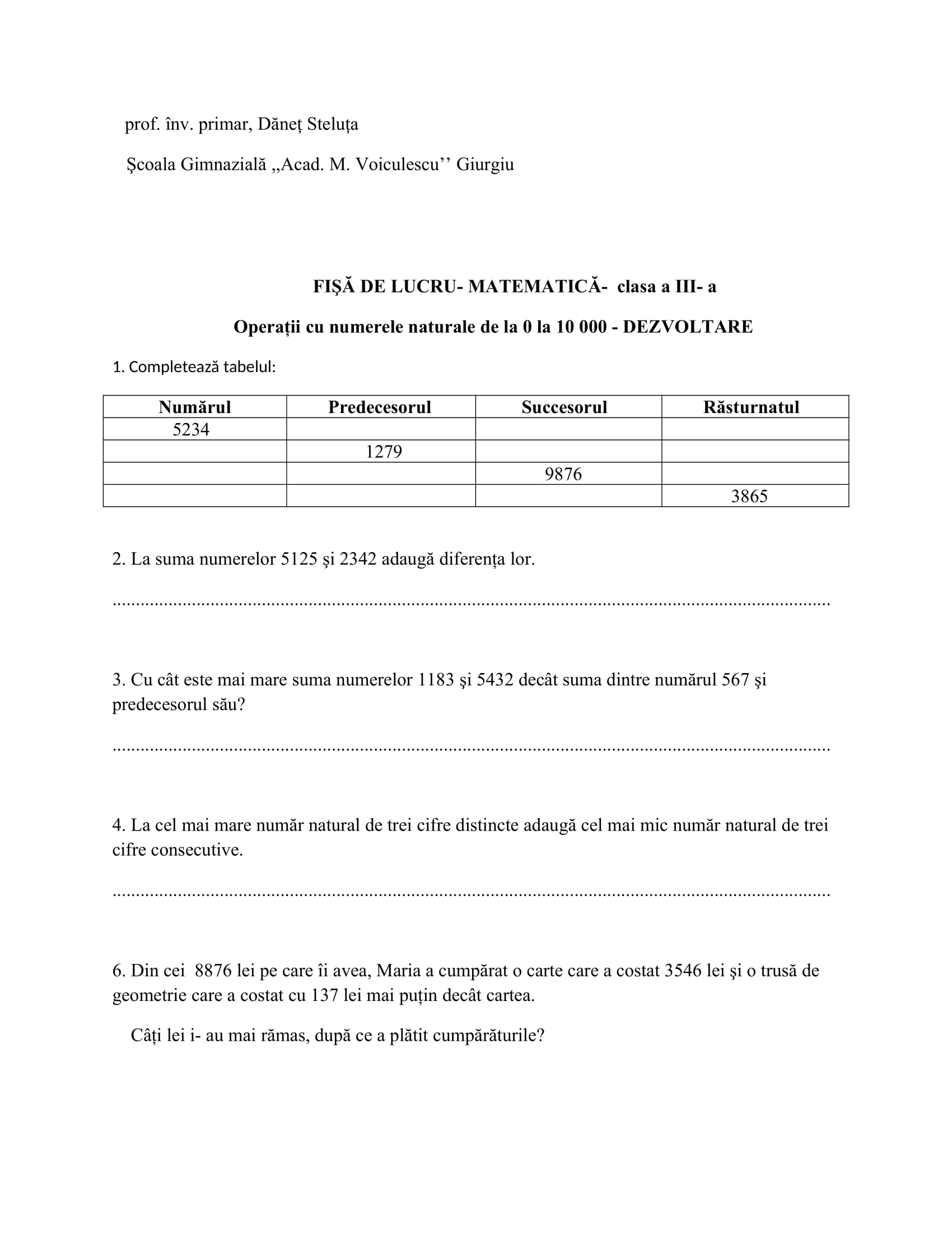 Profesor pentru învățământul primar la Școala Gimnazială ,, Acad. M. Voiculescu’’ cu gradul didactic I, o vechime de 18 ani