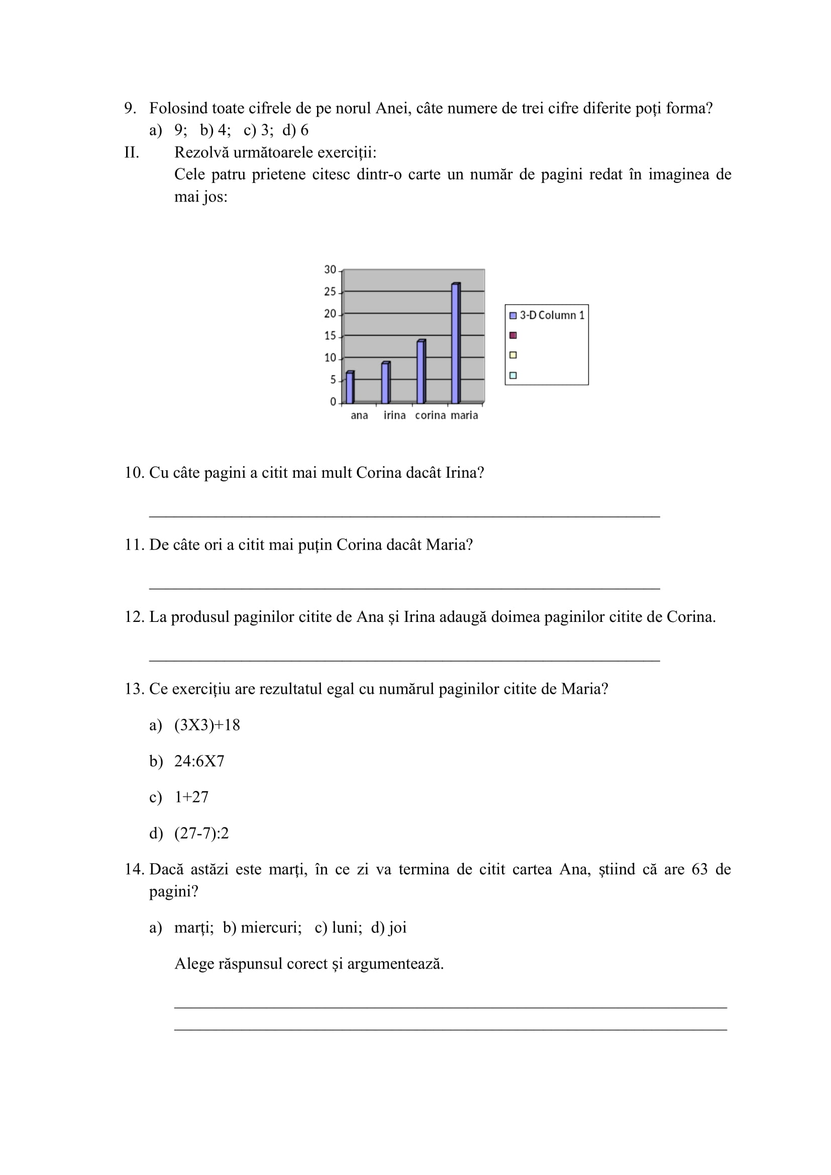 Test Evaluarea Națională la Matematică, clasa a II-aClasa a II-a, Clasele primare, Matematică / Autor AcademiaABC EVALUARE-NATIONALA-MATEMATICA.doc (1 Descărcări ) Vornicu AndaProfesor învăţământ primar la Școala Gimnazială Nr.280, București, vechime de 30 de ani Distribuie pe: 0 Distribuiri Facebook 0 Email Imprimă Copiază legătura