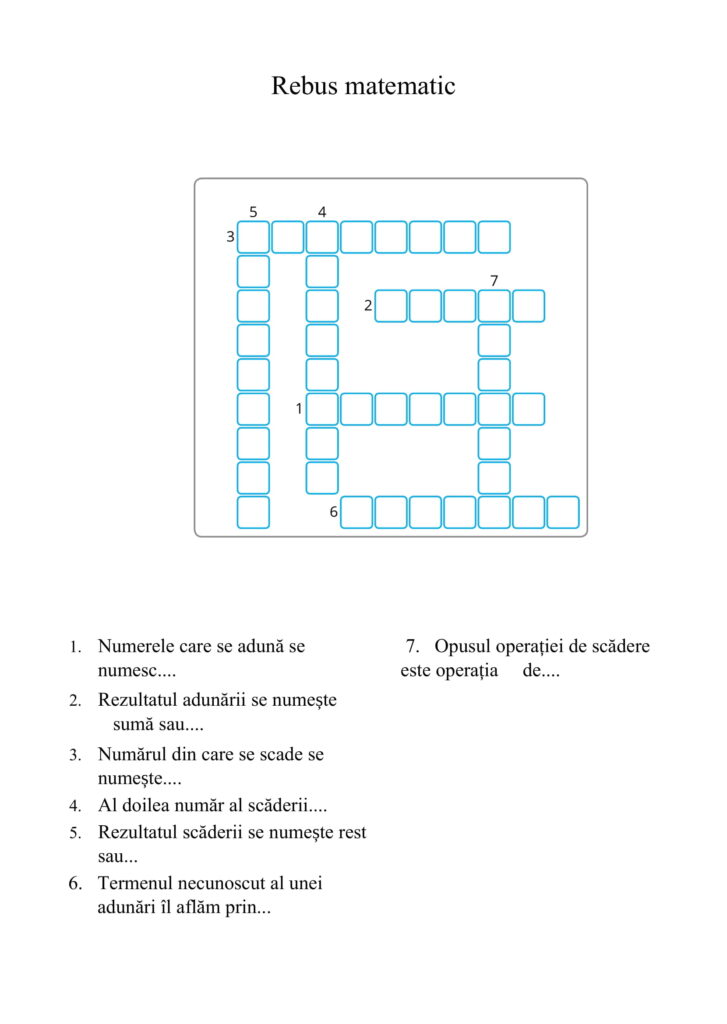 Rebus matematicClasa a III-a, Clasa a IV-a, Clasele primare, Limba și literatura română / Autor Cadru didactic rebus-matematic-cuvinte-incrucisate.docx (1 Descărcări ) Gavrilenco Mihaela CristinaProfesor învățământ primar la Școala Gimnazială Nr. 84 București; Distribuie pe: 0 Distribuiri Facebook 0 Email Imprimă Copiază legătura