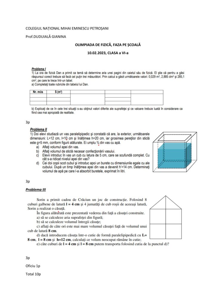 Olimpiadă Fizică-Etapa pe școală Clasa a VI-aClasa a VI-a, Clasele gimnaziale, Fizică / Autor Cadru didactic OLIMPIADA-DE-FIZICA6.faza-pe-scoala.Duduiala-G.pdf (619 Descărcări ) Duduială GianinaProfesor de Fizică la Colegiul Național Mihai Eminescu Petroșani, gradul didactic I; Distribuie pe: 0 Distribuiri Facebook 0 Email Imprimă Copiază legătura