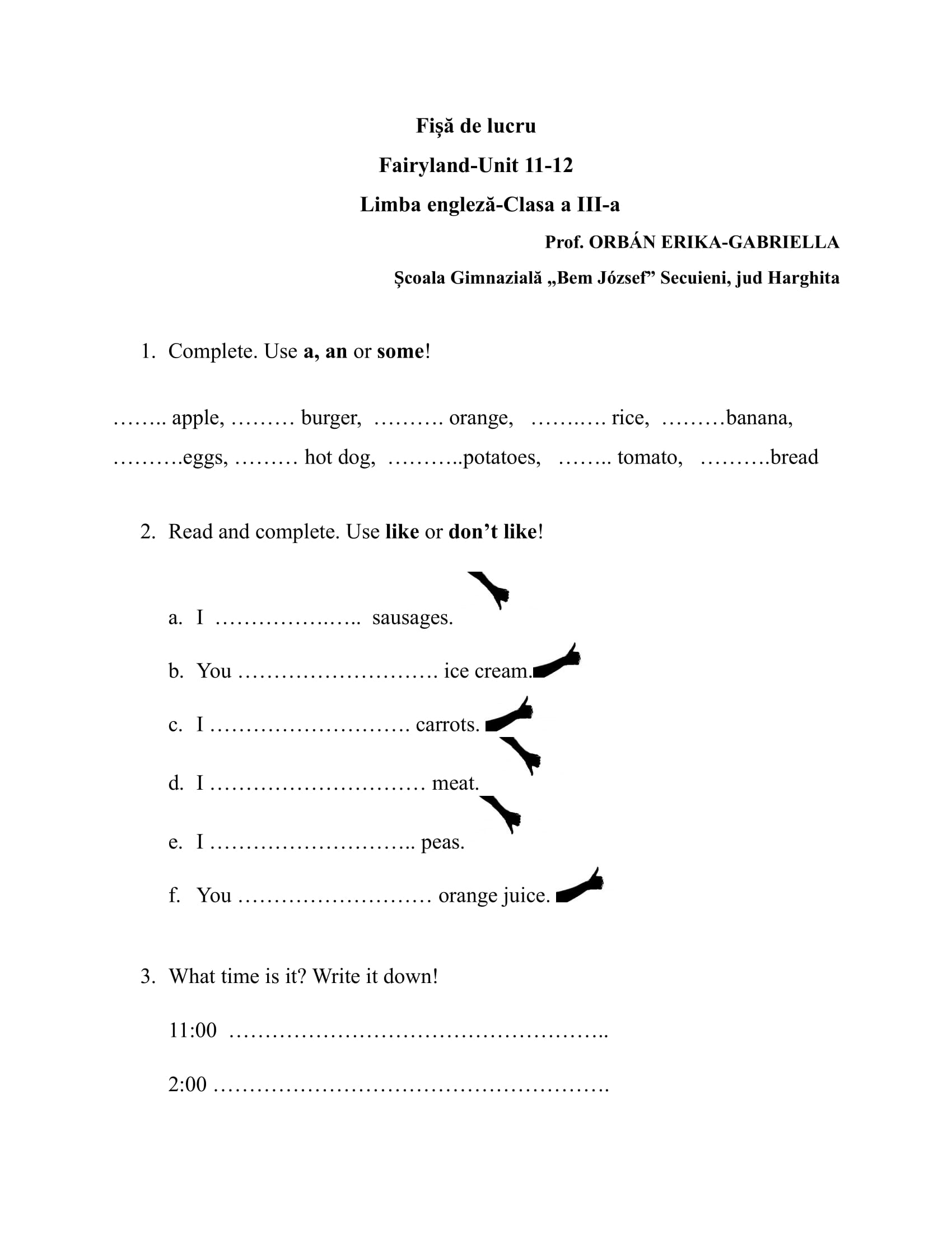 Director/ Profesor la Școala Gimnazială "Bem József" Secuieni, jud. Harghita, grad didactic I, 25 de ani vechime;