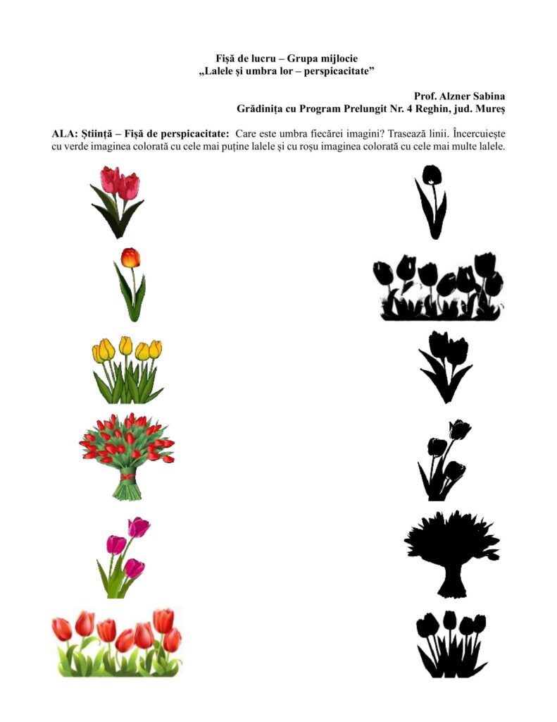 Fișă de lucru Grupa mijlocie „Lalele și umbra lor – perspicacitate”