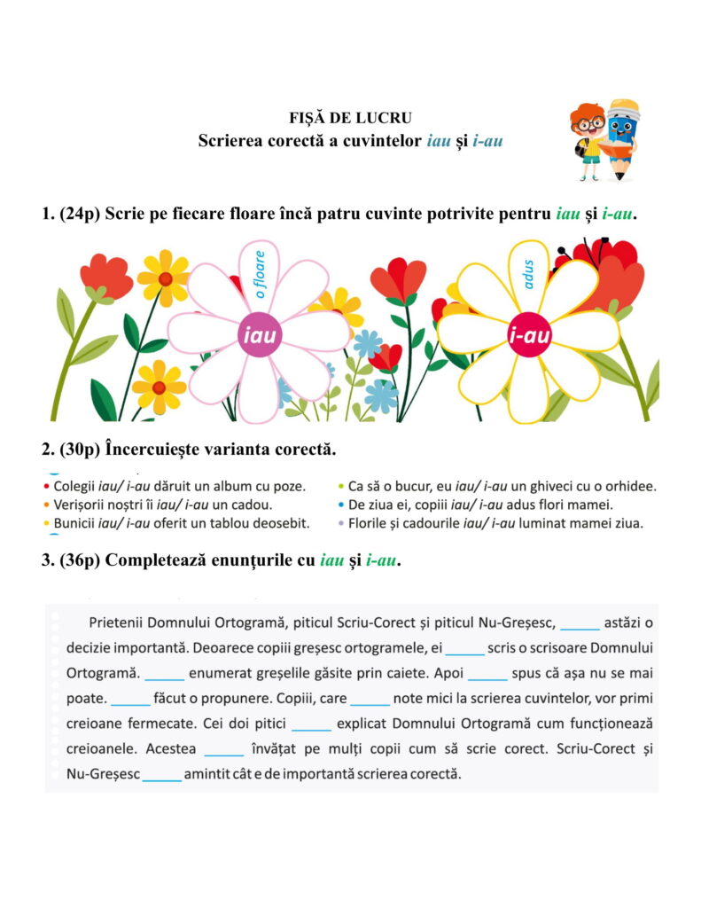 Fișă de lucru Clasa a III-a Scrierea corectă a cuvintelor iau și i-auClasa a III-a, Clasele primare, Limba și literatura română / Autor Cadru didactic III-BRANISTEA.docx (1 Descărcări ) Constantin CostelProfesor învățământ primar Școala Gimnazială “Spiru Haret “ Braniştea, gradul didactic I; Distribuie pe: 0 Distribuiri Facebook 0 Email Imprimă Copiază legătura