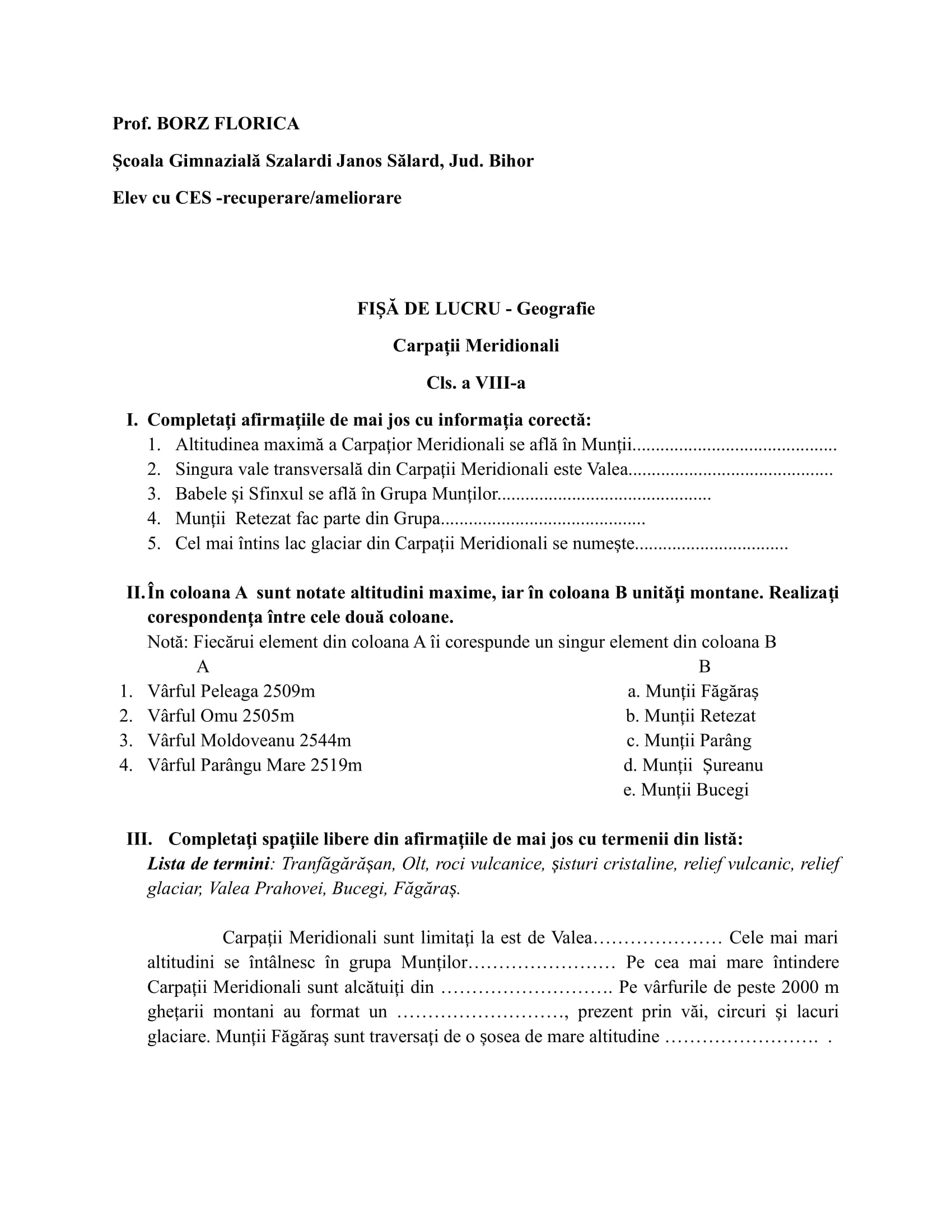 Profesor de Istorie-Geografie titular la Școala Gimnazială Szlardi Janos Sălard, Jud Bihor, cu o vechime de 26 ani;