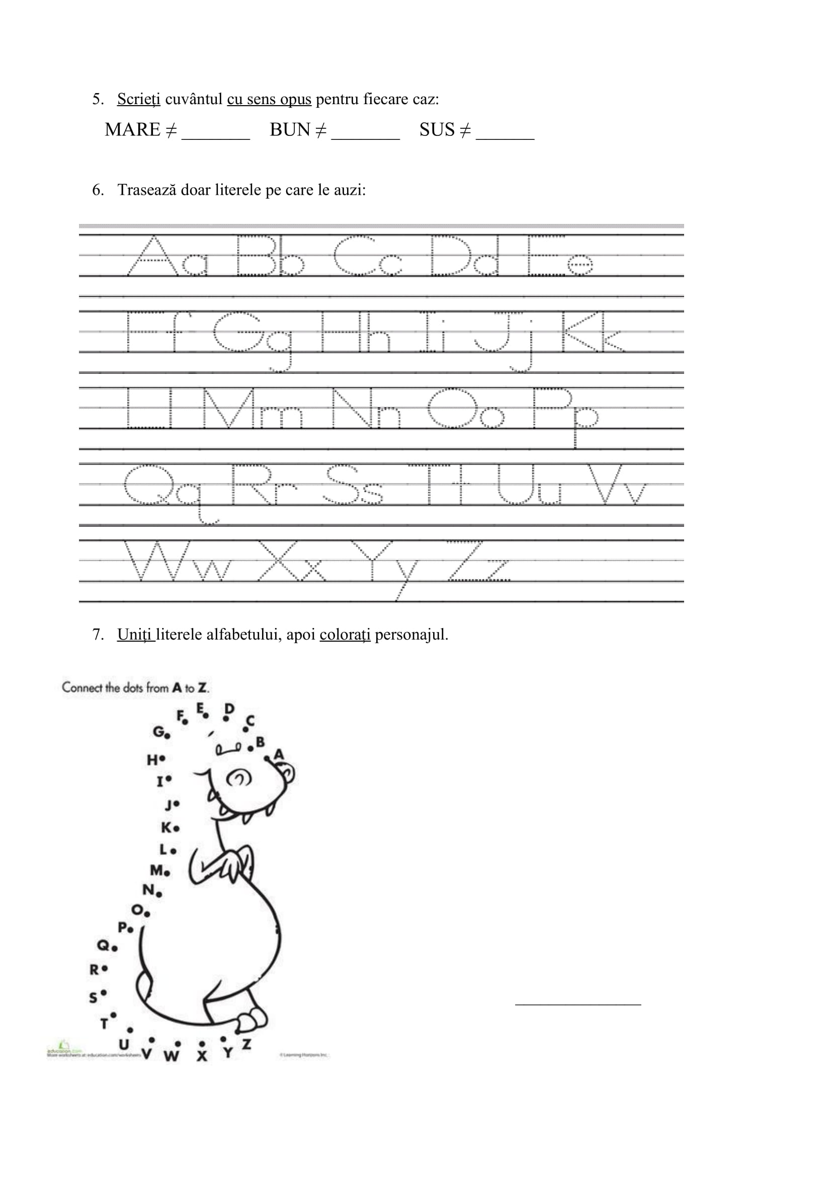 Fișă de lucru Sunetele şi literele alfabetului Clasa I (Ameliorare)Clasa I, Clasele primare, Comunicare în limba română / Autor Cadru didactic alfabetul-cl-I-CLR-ameliorare.docx (1 Descărcări ) Teodor Ruxandra-CorneliaProfesor învățământ primar la Şcoala Gimnazială ,,Mihu Dragomir" Brăila; Distribuie pe: 0 Distribuiri Facebook 0 Email Imprimă Copiază legătura