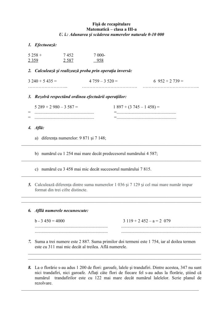 Recapitulare-Adunarea și scăderea numerelor naturale 0-10 000Clasa a III-a, Clasele primare, Jocuri didactice, Matematică / Autor Cadru didactic Fisa-de-recapitulare_Cocolici-Anisoara.docx (319 Descărcări ) Anișoara CocoliciProfesor învățământ primar la Școala Gimnazială ,,Elena Doamna” Tecuci; Distribuie pe: 0 Distribuiri Facebook 0 Email Imprimă Copiază legătura