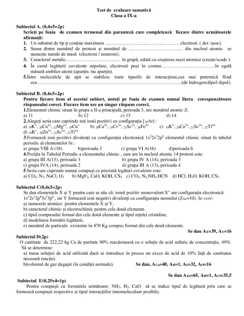 Test de evaluare sumativă Chimie Clasa a IX-aChimie, Clasa a IX-a, Clasele liceale / Autor Cadru didactic Test_evaluare_sumativa-RED-Diferentiat.doc (1 Descărcări ) Elena CiobanuProfesor de Chimie la Colegiul Național ,,Tudor Vladimirescu"; Distribuie pe: 0 Distribuiri Facebook 0 Email Imprimă Copiază legătura