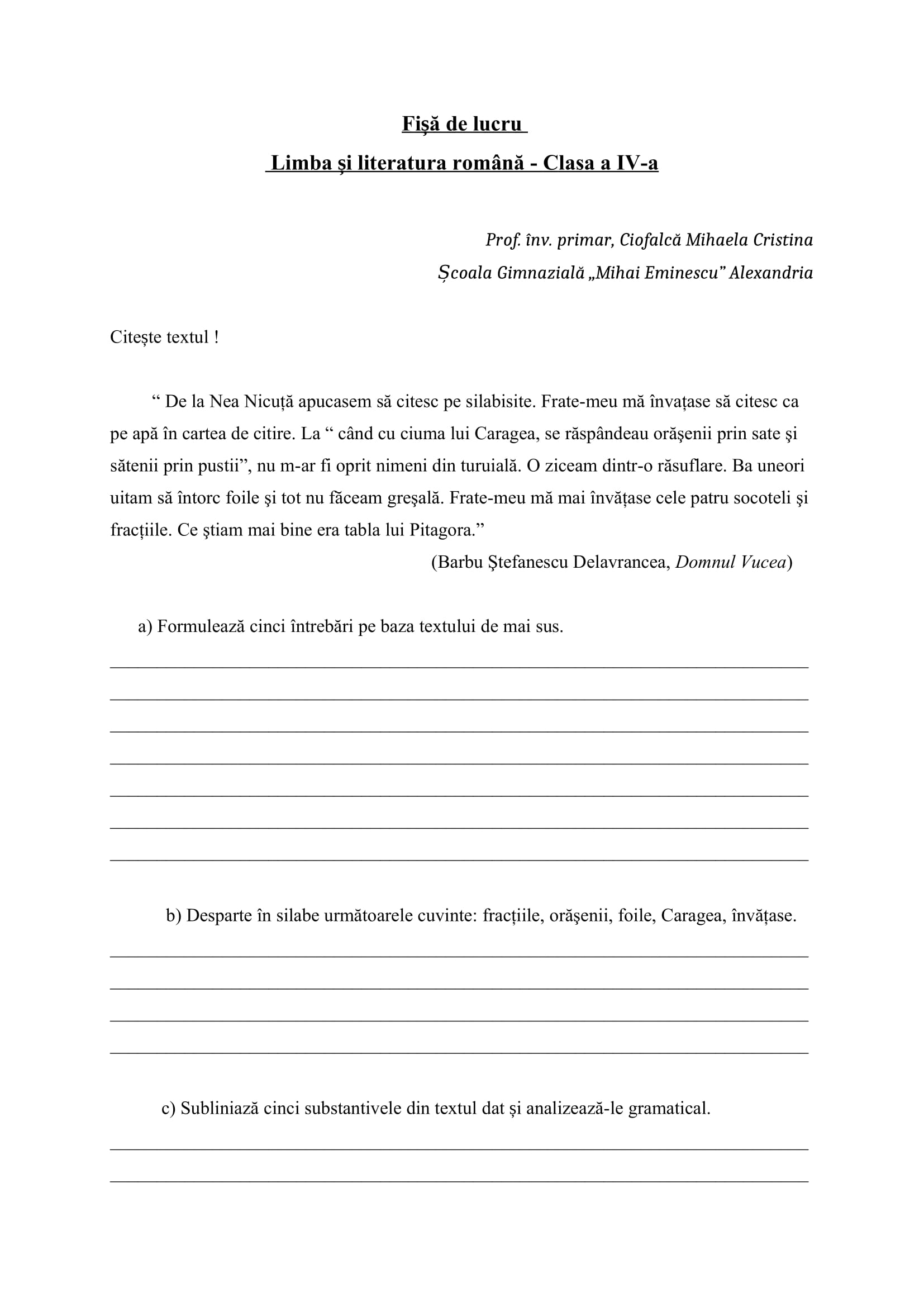 Profesor învățământ primar la Școala Gimnazială „Mihai Eminescu”, Alexandria, grad didactic I, 32 de ani vechime, formator, leading teacher Europe Code Week;