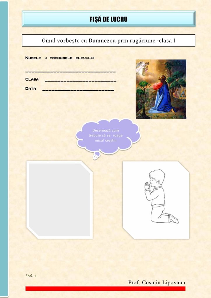 Fișă de lucru Clasa I – Omul vorbește cu Dumnezeu prin rugăciuneClasa I, Clasele primare, Religie / Autor Cadru didactic Omul-vorbeste-cu-Dumnezeu-_clasa_I-RED_DIFERENTIAT.docx (1 Descărcări ) Lipovanu CosminProfesor de Religie ortodoxă la Liceul Teoretic ,,Mihai Veliciu” Chișineu-Criș; Distribuie pe: 0 Distribuiri Facebook 0 Email Imprimă Copiază legătura