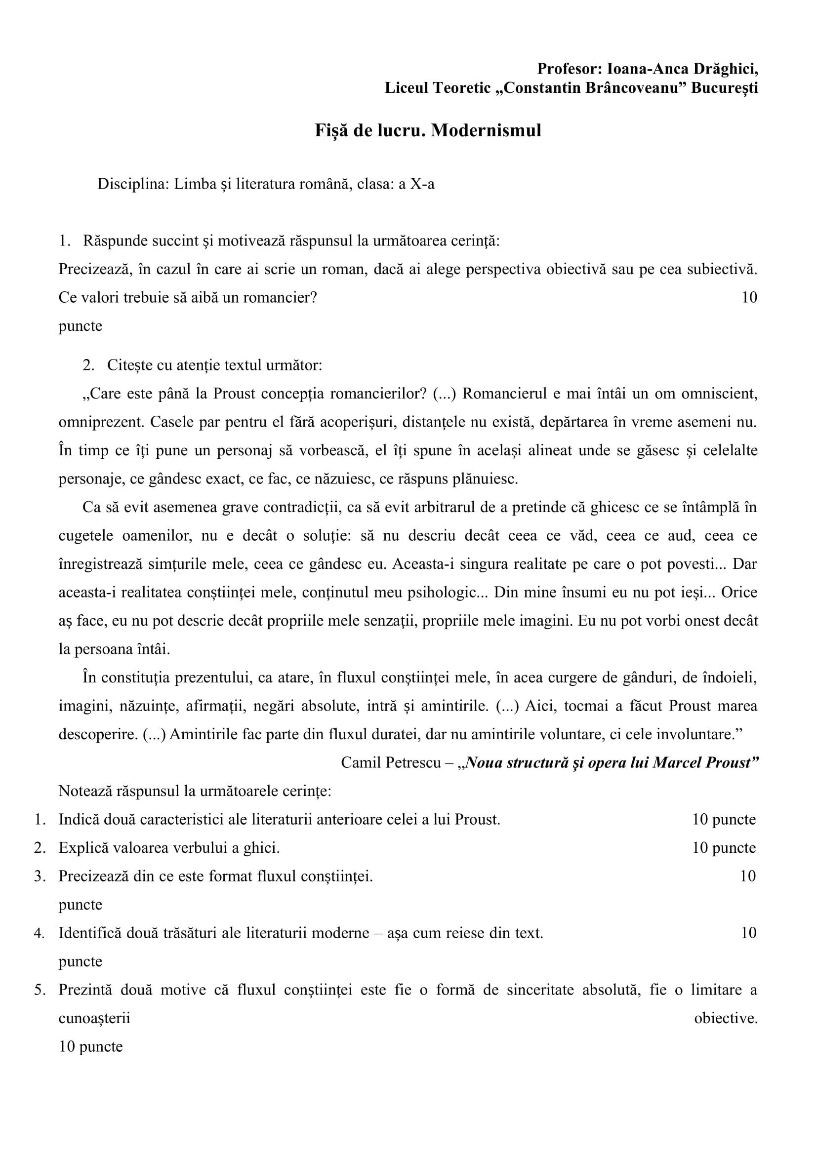 Profesor de Limba și literatura română la Liceul Teoretic „Constantin Brâncoveanu” București, gradul didactic II, 10 ani vechime;