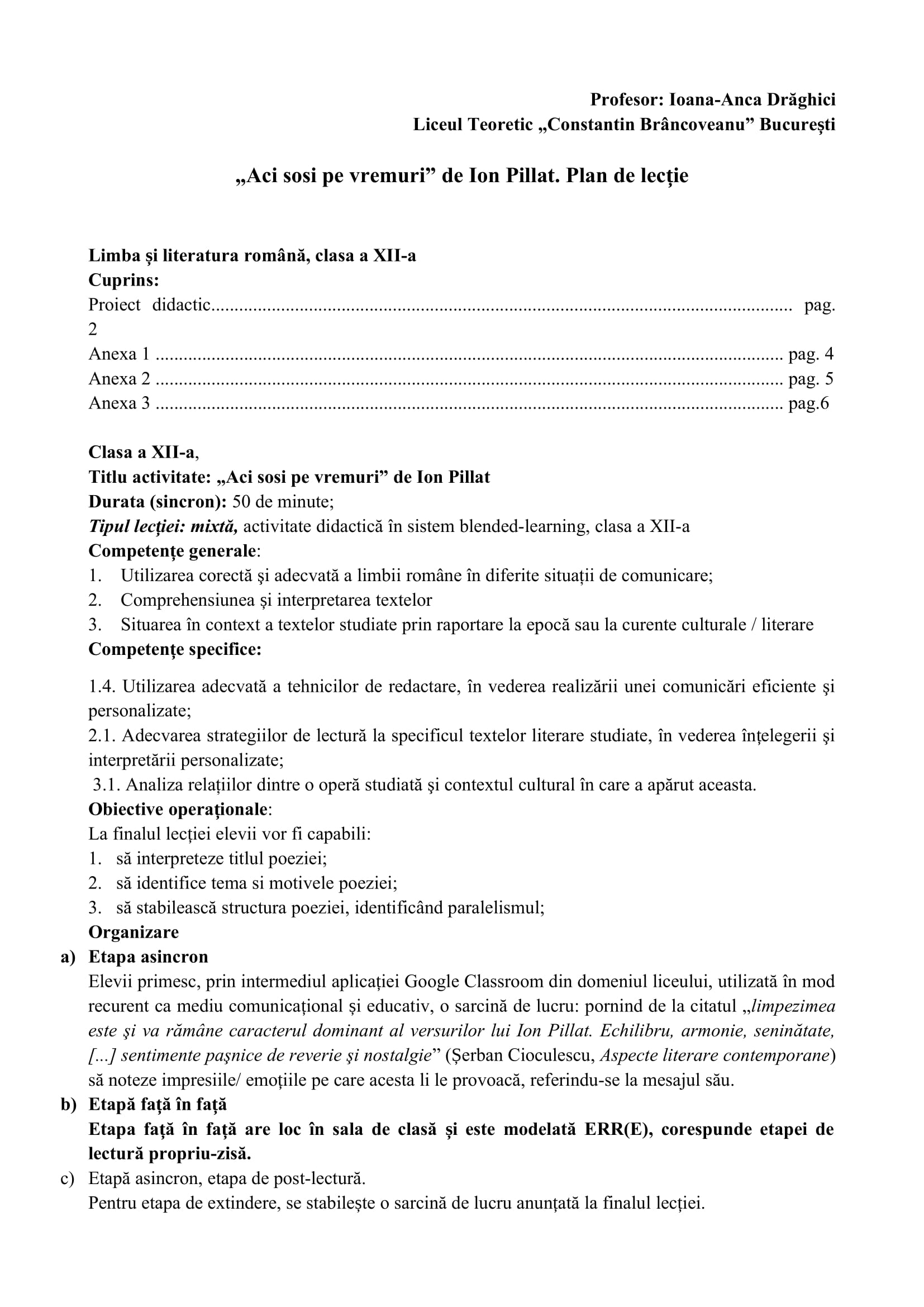 Profesor de Limba și literatura română la Liceul Teoretic „Constantin Brâncoveanu” București, gradul didactic II, 10 ani vechime;