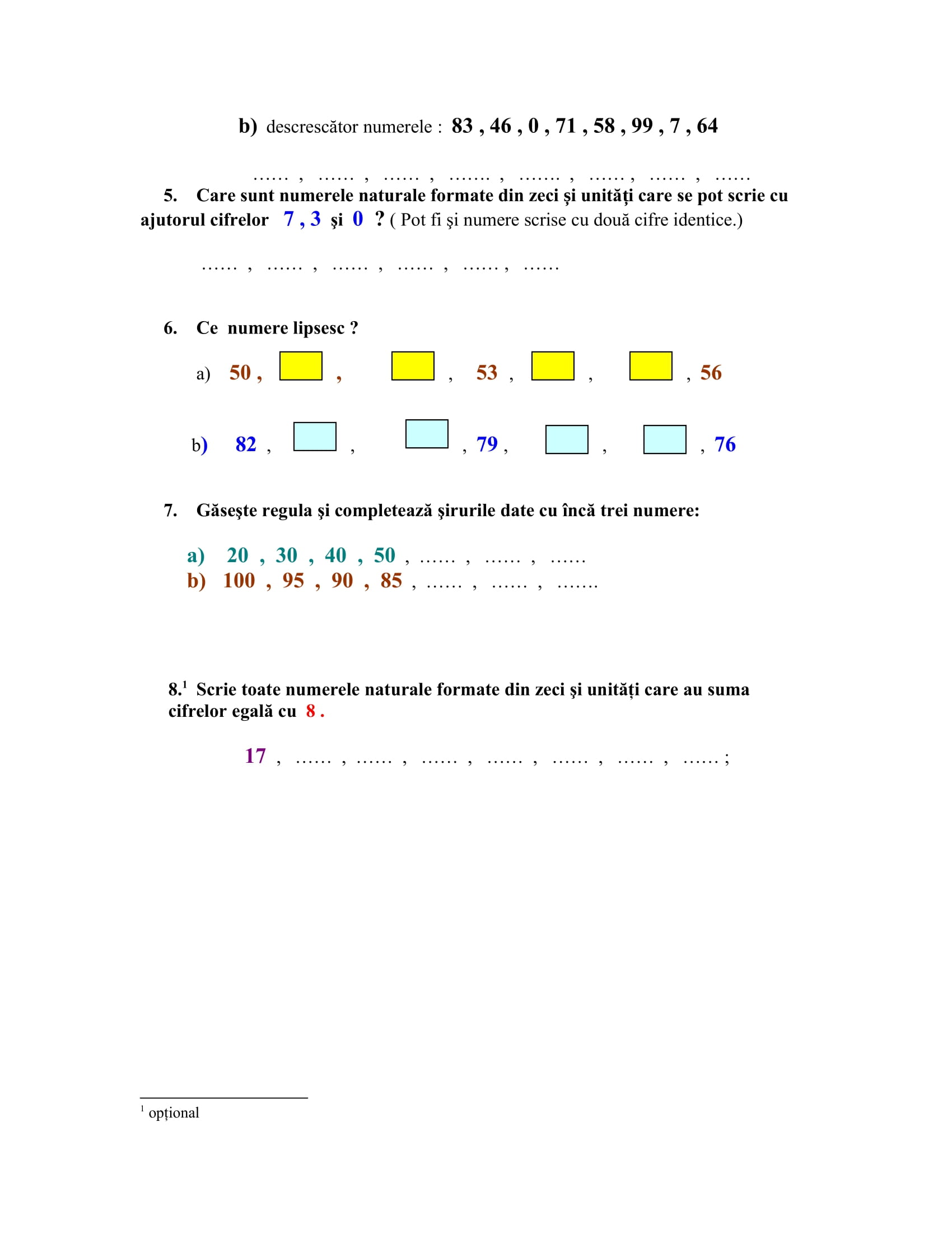 Test de evaluare Numerele naturale de la 0 la 100 Clasa I