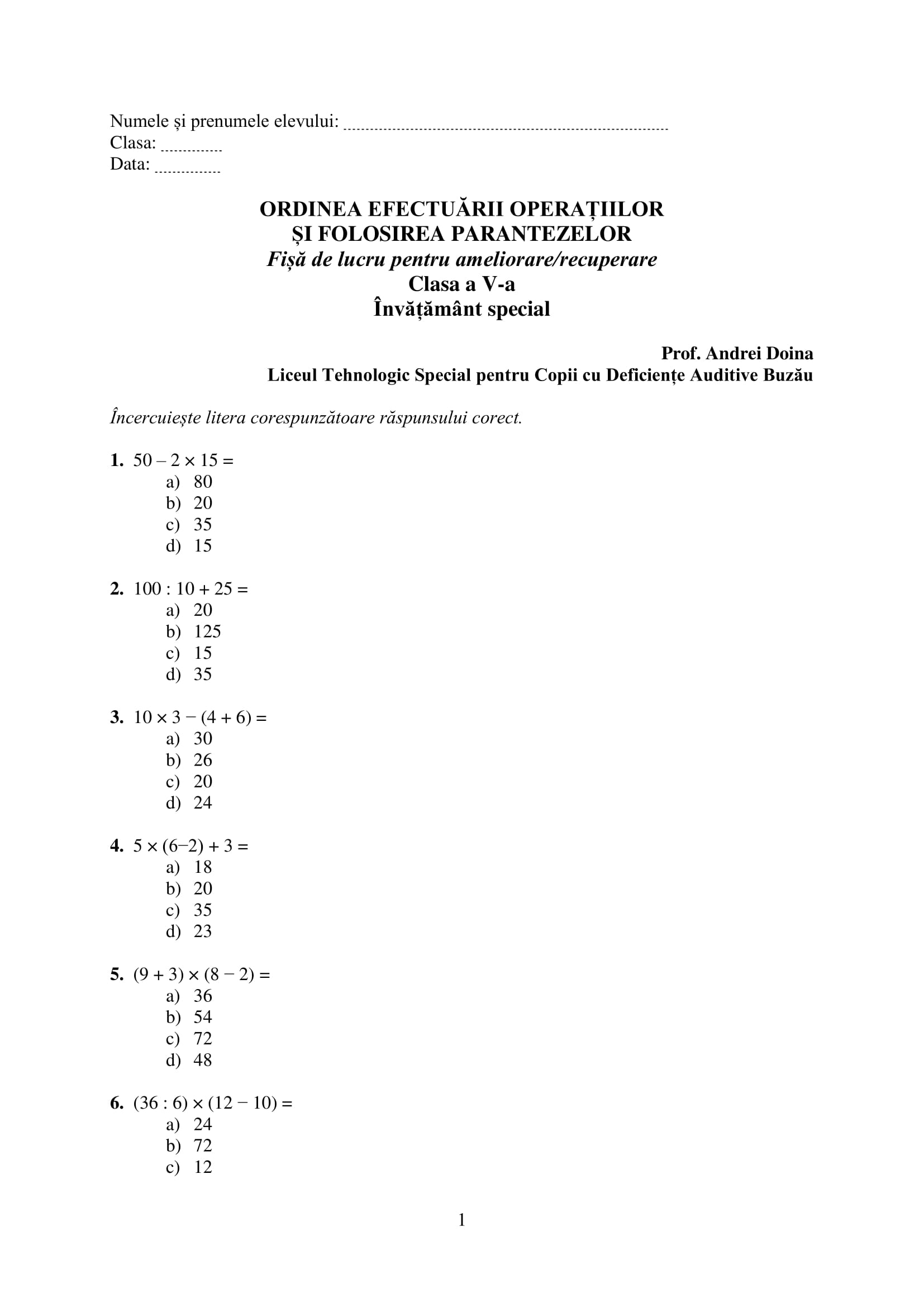 Profesor de matematică și discipline tehnice din domeniul Industrie textile și pielărie la Liceul Tehnologic Special pentru Copii cu Deficiențe Auditive Buzău,