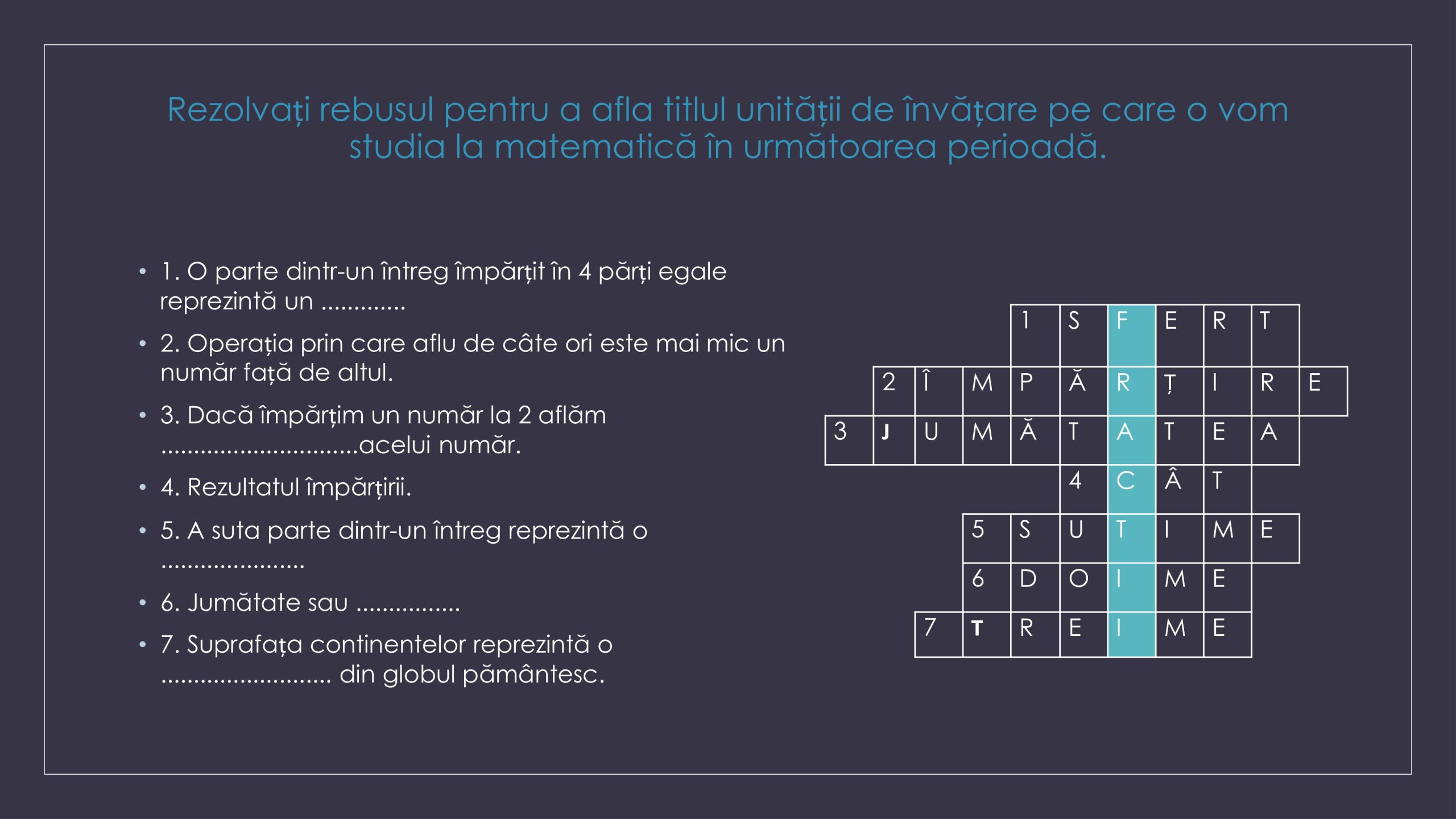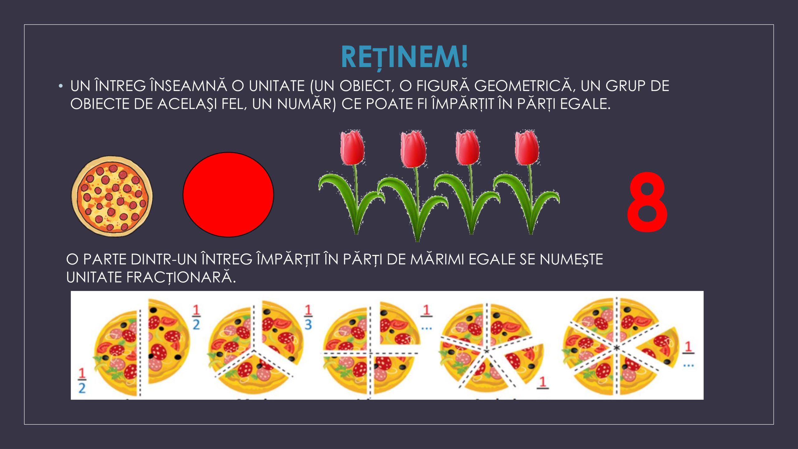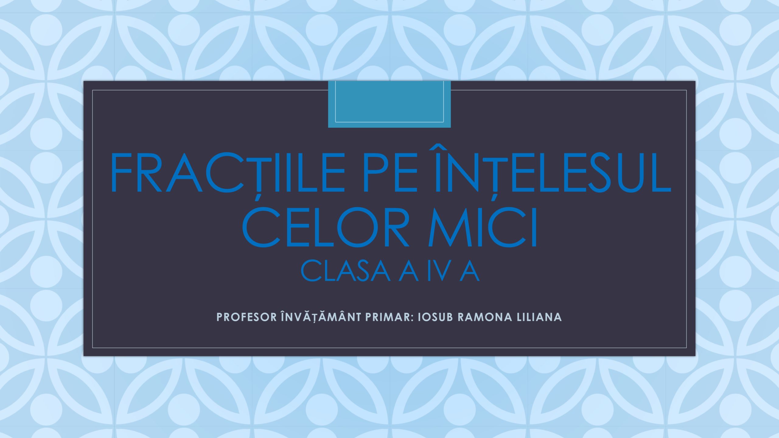 Fracțiile pe înțelesul celor miciClasa a IV-a, Clasele primare, Matematică, Soft Educațional / Autor Cadru didactic Fractiile-pe-intelesul-celor-mici.pptx (1 Descărcări ) Iosub Ramona LilianaProfesor învățământ primar la Școala Gimnazială Elena Cuza Piatra Neamț; Distribuie pe: 0 Distribuiri Facebook 0 Email Imprimă Copiază legătura