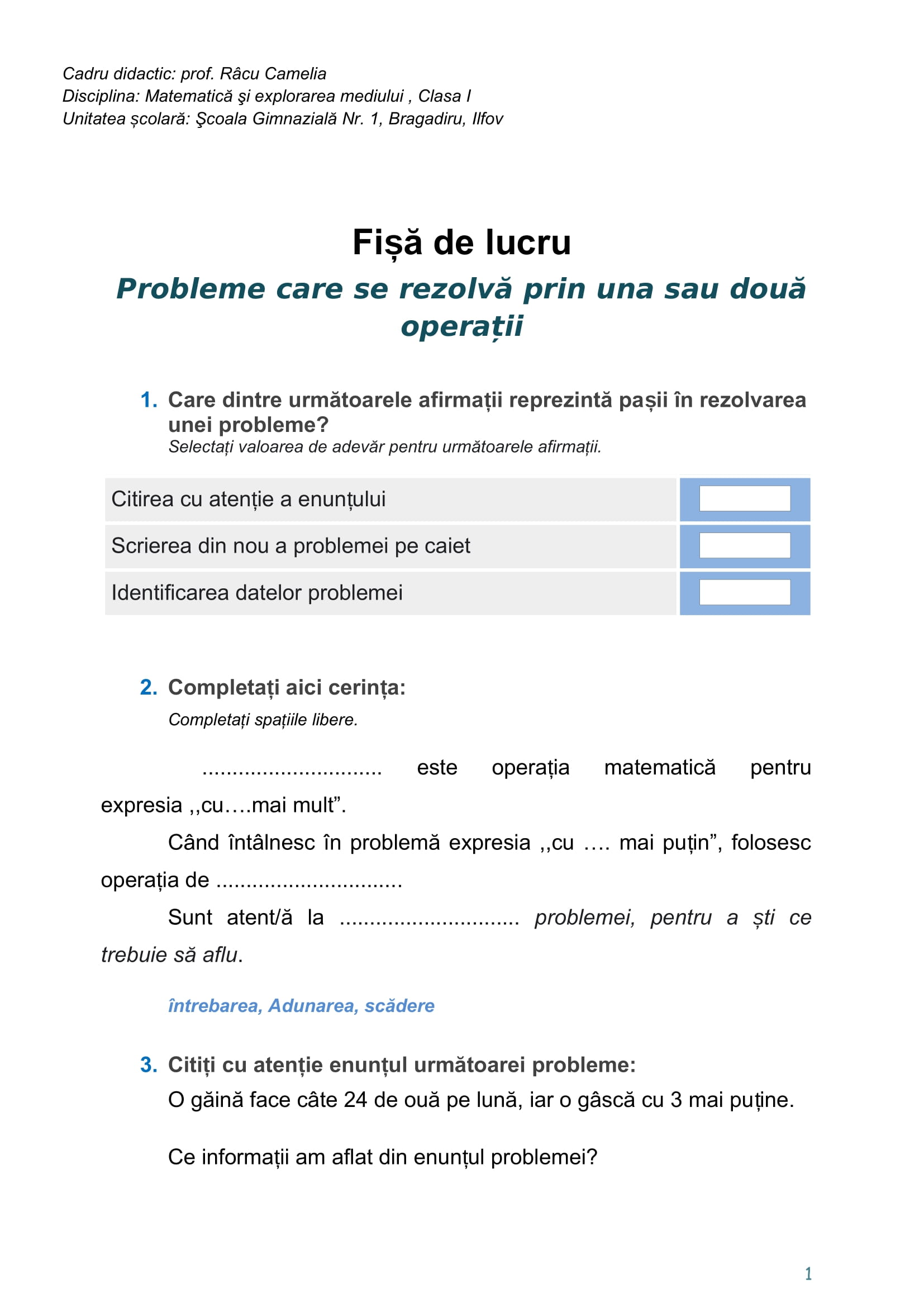 Profesor învățământ primar la Şcoala Gimnazială Nr. 1 Bragadiru, grad didactic I, 25 ani vechime în învățământ;