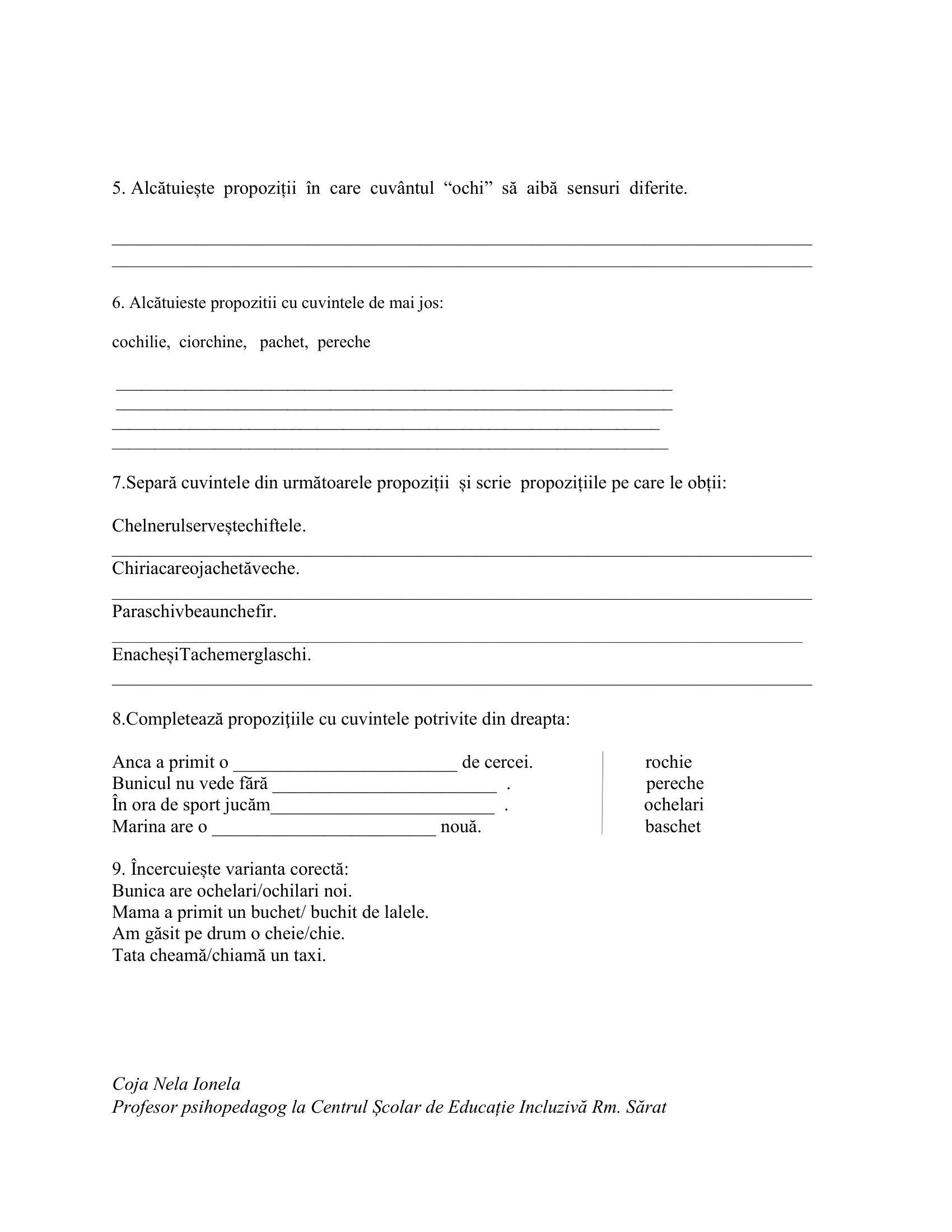 Profesor psihopedagog la Centrul Școlar de Educație Incluzivă Rm. Sărat, județul Buzău, gradul didactic I;