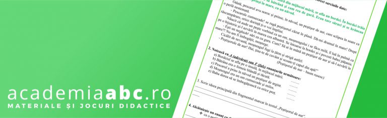 Academia ABC vă propune un set de 3 fișe intitulate JOC DE CUVINTE destinate copiilor de clasa a II-a sau chiar a III-a și a IV-a. Jocul are ca scop