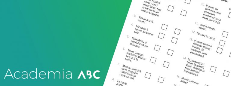 Academia ABC vă oferă un material didactic util în însușirea și consolidarea cunoștințelor despre semnele de punctuație. Setul curpinde un număr de 2 fișe. Exercițiile sunt identice în ambele fișe,